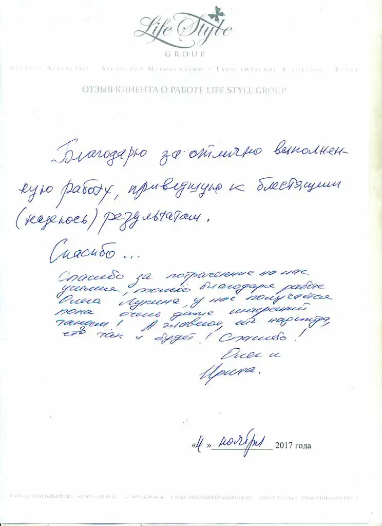 Life Style Group – современная компания свадебной индустрии, отличающаяся от существующих служб знакомств и брачных агентств, собственными эффективными методиками и технологиями, созданными на основе российского и международного опыта в области семейной психологии и коучинга, детальным анализом запросов каждого Клиента и современного рынка услуг, регулярным контролем качества и динамичностью, а также строгой приверженностью к высокими стандартам сервиса, которые позволяют нам быть впереди и превосходить ожидания Клиентов!
